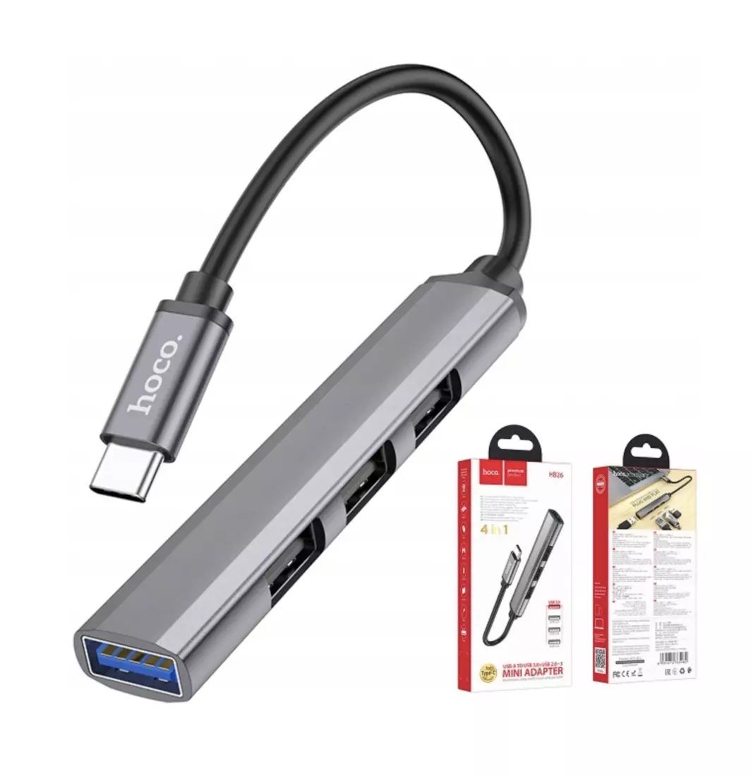 USB HUB HOCO HB26 4 in 1 Type-C to USB 3.0 + USB 2.0х3 Разветвитель для ноутбука Стальной