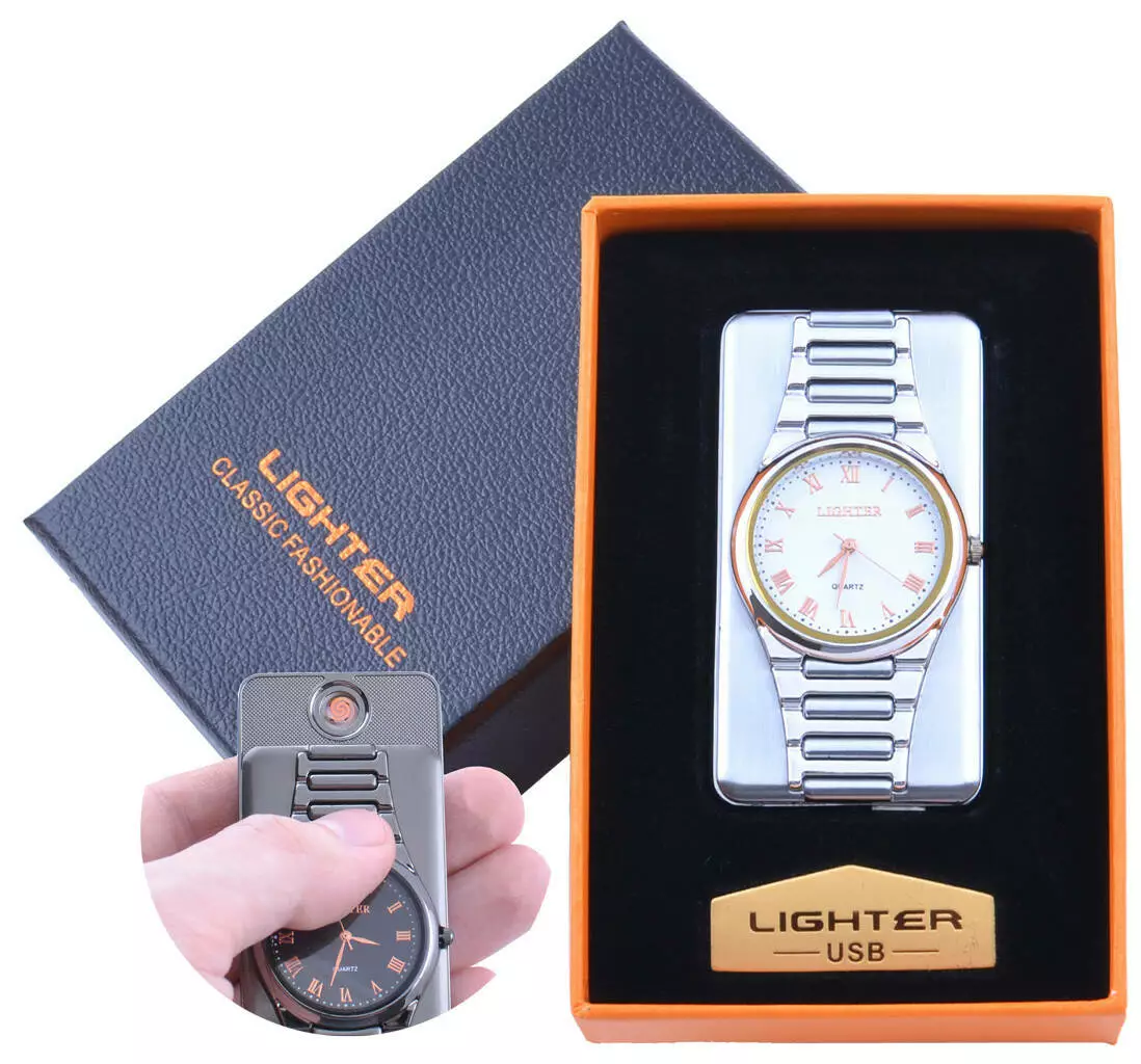 USB зажигалка с часами в подарочной упаковке LIGHTER (Cпираль накаливания) XT-4957-2