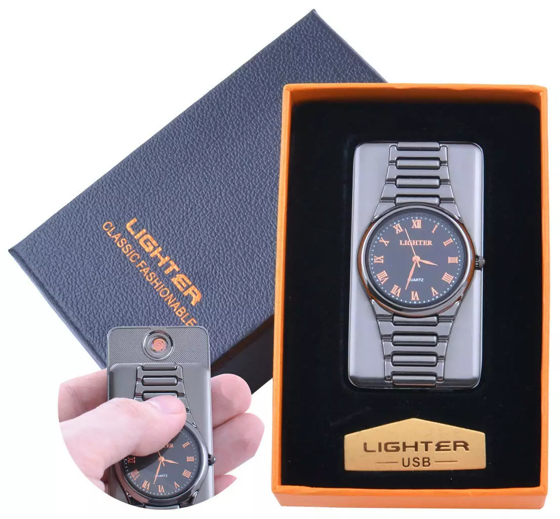 USB зажигалка с часами в подарочной упаковке LIGHTER (Cпираль накаливания) XT-4957-3