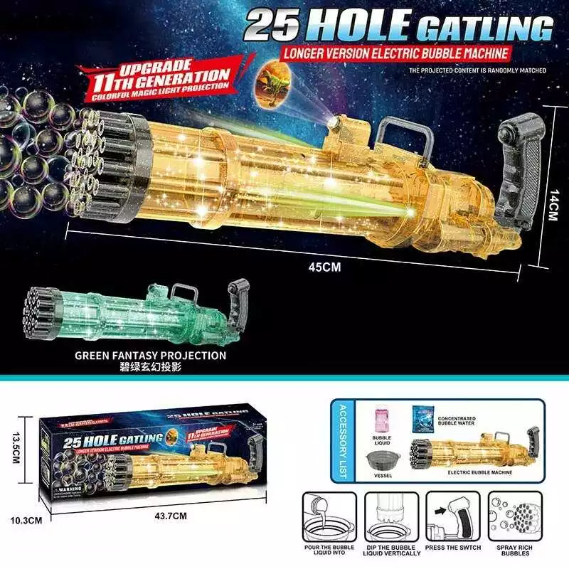 Установка с мыльными пузырями KB 1130 (20) "Бластер", подсветка, проектор, концентрат для мыльных пузырей, в коробке