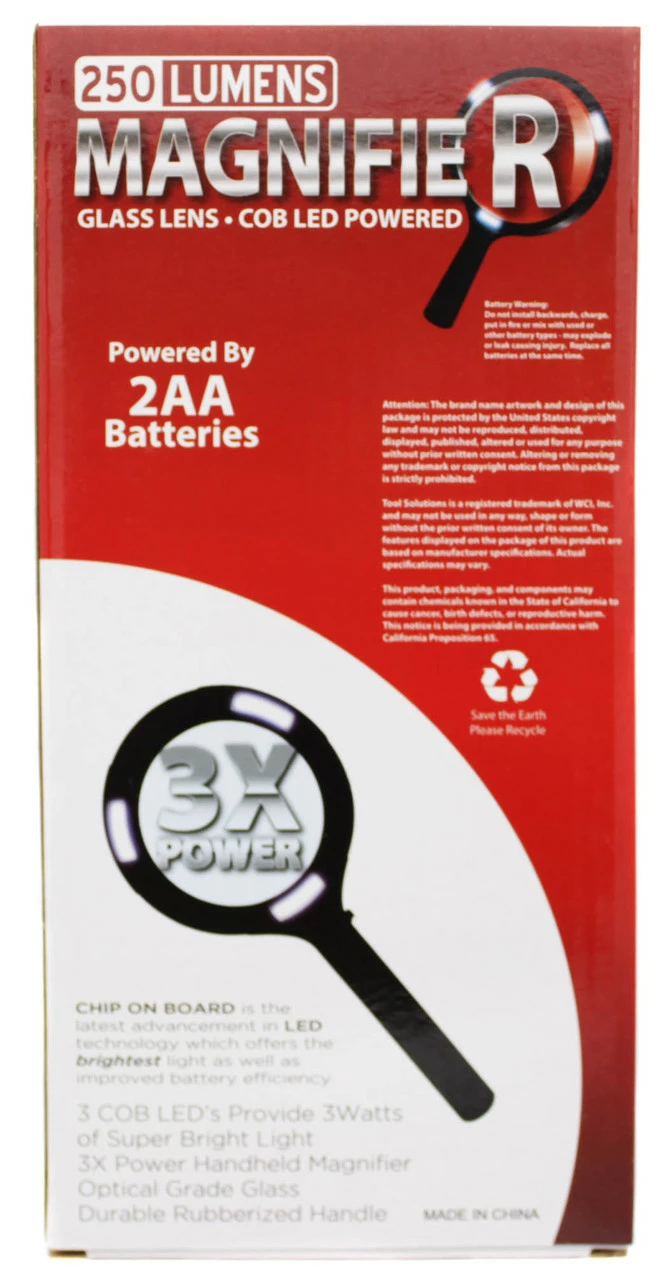 Полезный атрибут в доме. Увеличительное стекло с 12 диодами, который питаются от батарейки. Диаметр стекла 11 см. Длинна 23.5 см. Упакован в коробку. Оптовый товар.