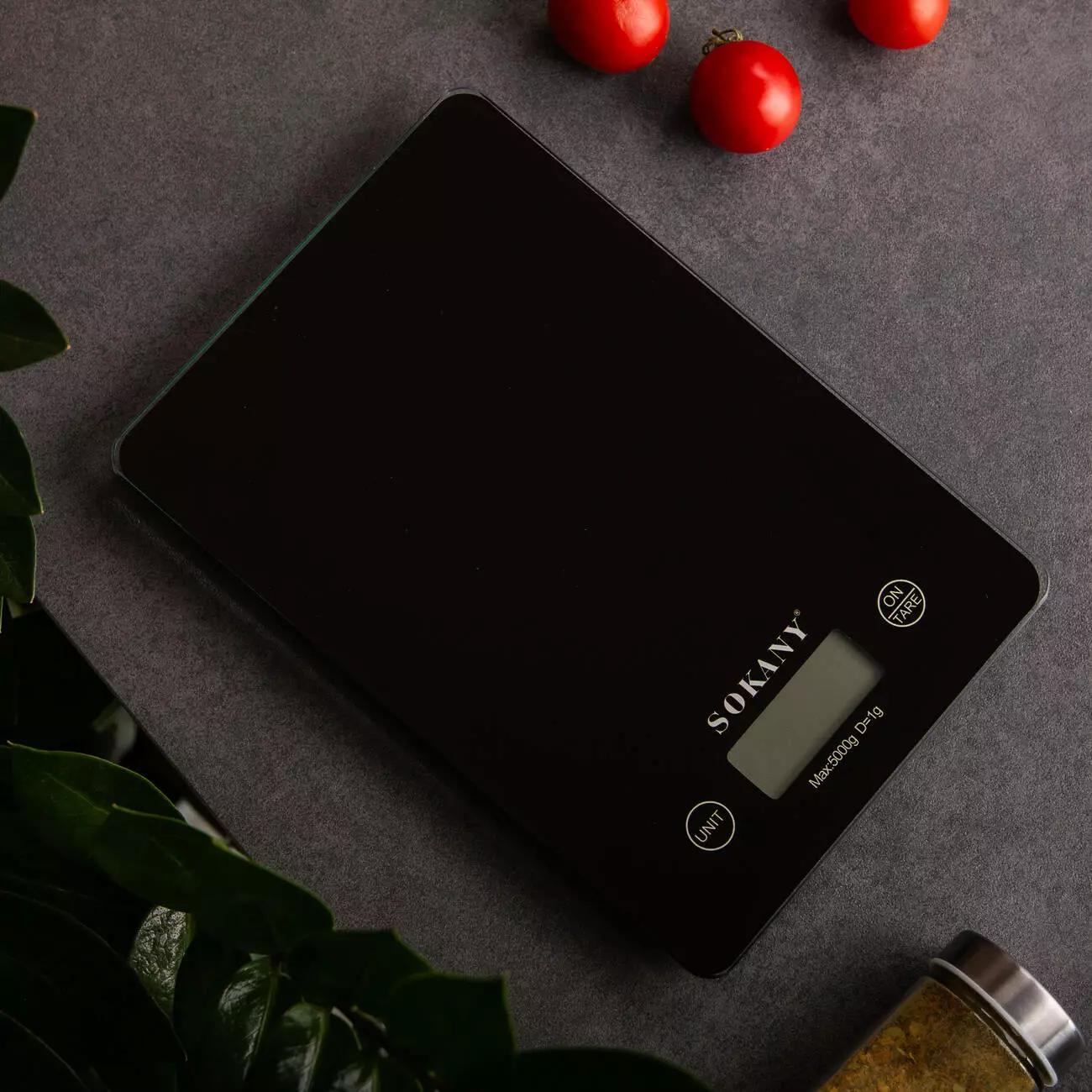 Ваги кухонні електронні SOKANY SK-19027 до 5 кг з плоскою платформою, чорний
