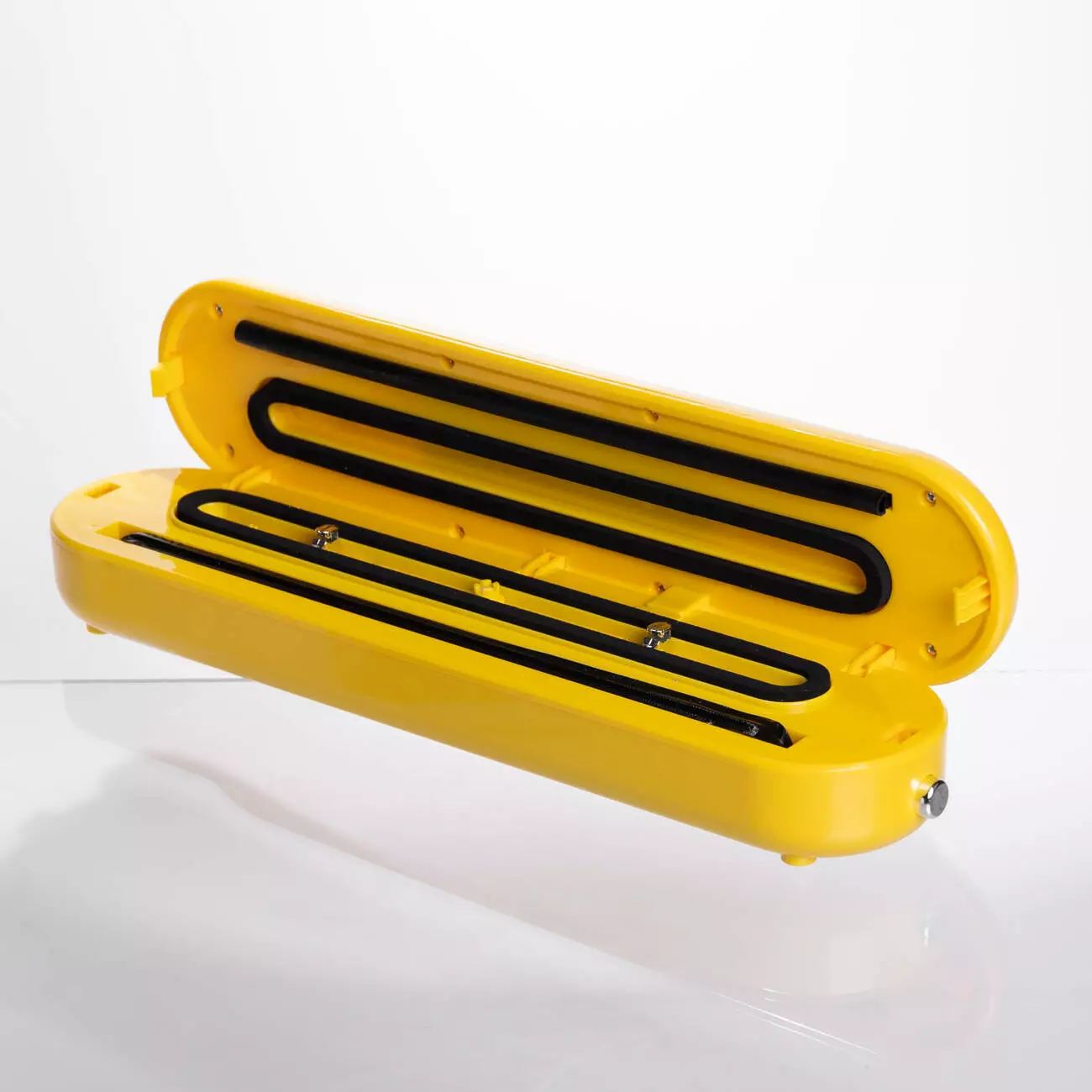 Цей компактний вакууматор потужністю 90 Вт допоможе надійно упаковати продукти, продовжити термін придатності та захистити від вологи та сторонніх запахів. Пристрій забезпечує силу всмоктування до 60 кПа - цього достатньо для швидкого та щільного видалення повітря з пакетів. Ідеальний для домашнього використання: зберігання м'яса, риби, сиру, овочів, сухих продуктів та приготування продуктів на пару/sous-vide. Довжина шва запаювання – 25 см.