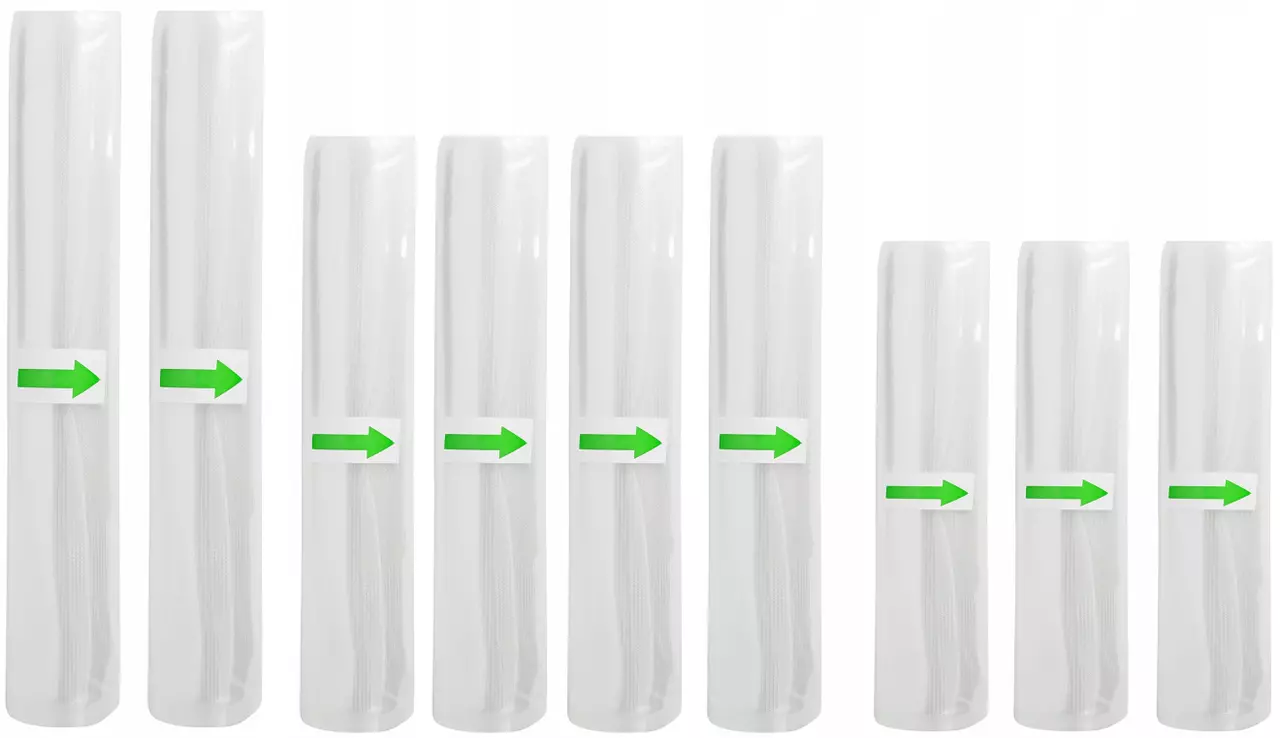 • КОМПАКТНЫЕ РАЗМЕРЫ – благодаря небольшим размерам его легко переносить и он не занимает много места. Когда устройство не используется, оно легко помещается в домашнем шкафу или отделении для хранения вещейВ комплект входит целых 9 рулонов запечатывающей фольги и 5 пакетов для пищевых продуктов большего размера в виде десятого рулона. Они бывают различных размеров и толщины, которые можно адаптировать к упаковываемым продуктам питания.