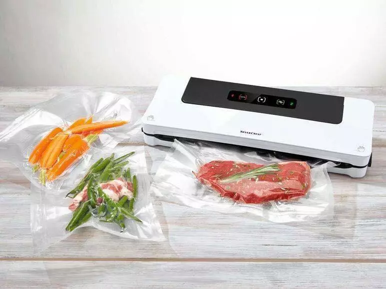 Отличительной чертой вакууматора Silver Crest SFS 120 A1 является технология VAC & SEEL, которая позволяет максимально быстро закрывать мешки во время всасывания воздуха. При этом запакованные продукты занимают минимум свободного места, благодаря чему их легче будет разместить в холодильнике. Модель отличается своей универсальностью, она подходит для упаковки мяса, рыбы, сыров, овощей, кондитерских изделий и пр. При этом работать с прибором очень легко, так как процессы всасывания воздуха и запечатывания происходят в автоматическом режиме.