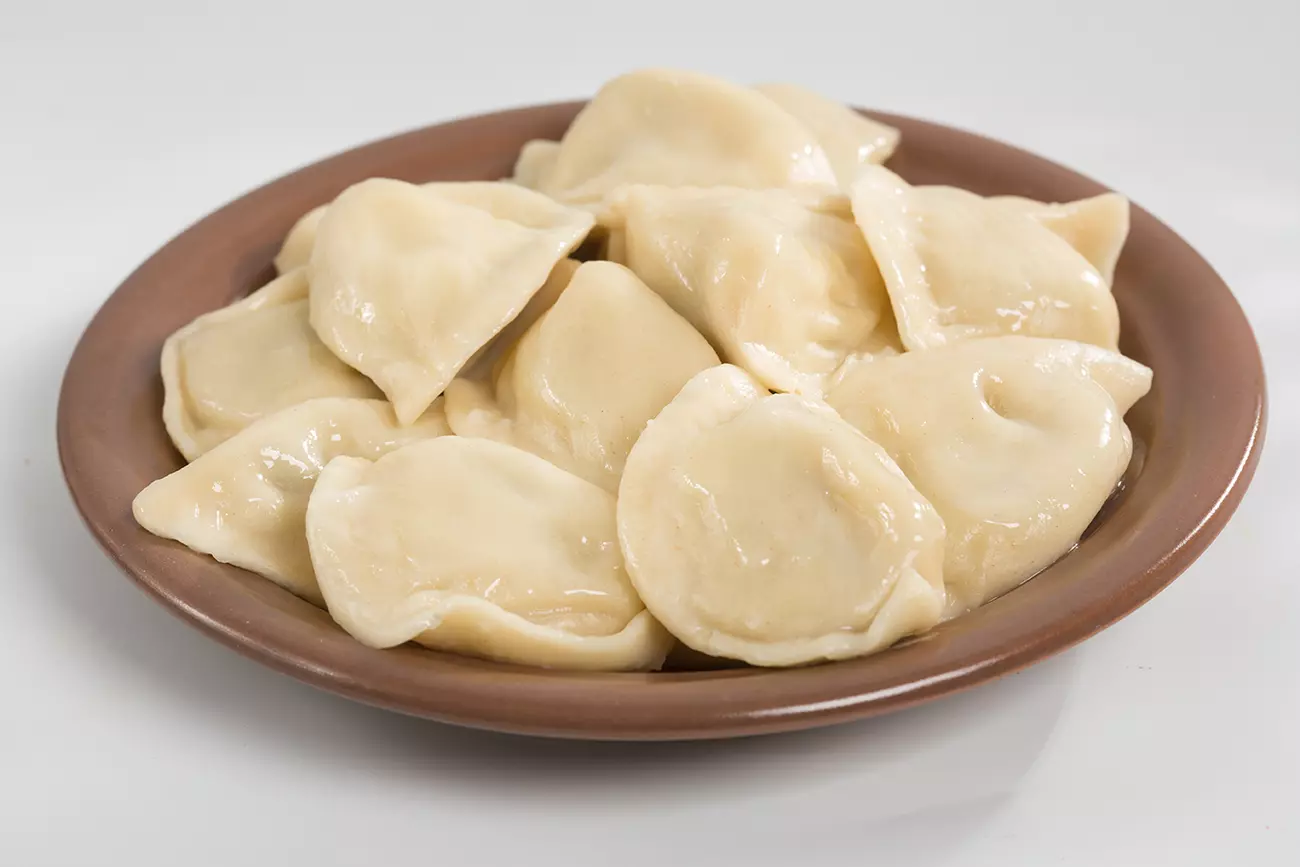 Состав: мука пшеничная в / с, картофель вареный, вода, грибы шампиньоны, лук, спред, масло, соль, перец черный молотый.