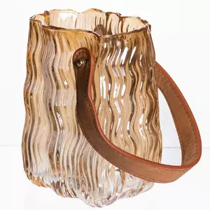 Поєднання холодного скла та теплої екошкіри створює сучасний контраст - виріб виглядає одночасно витончено та затишно. Хвилеподібна поверхня підкреслює природність та художність виробу.