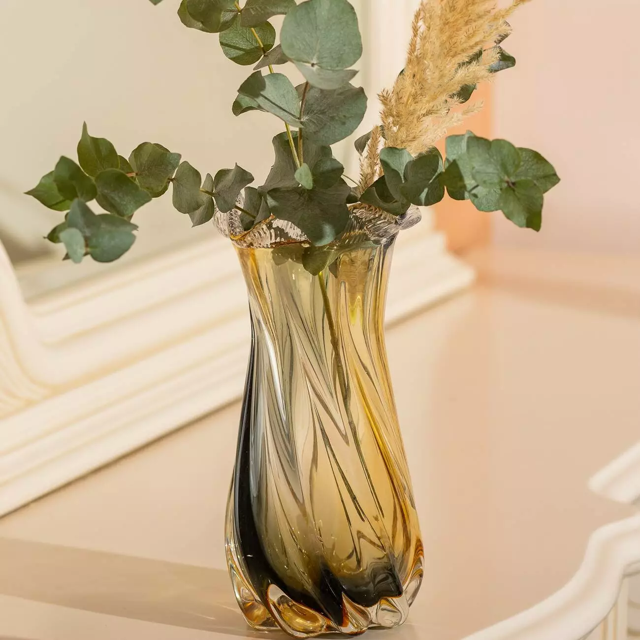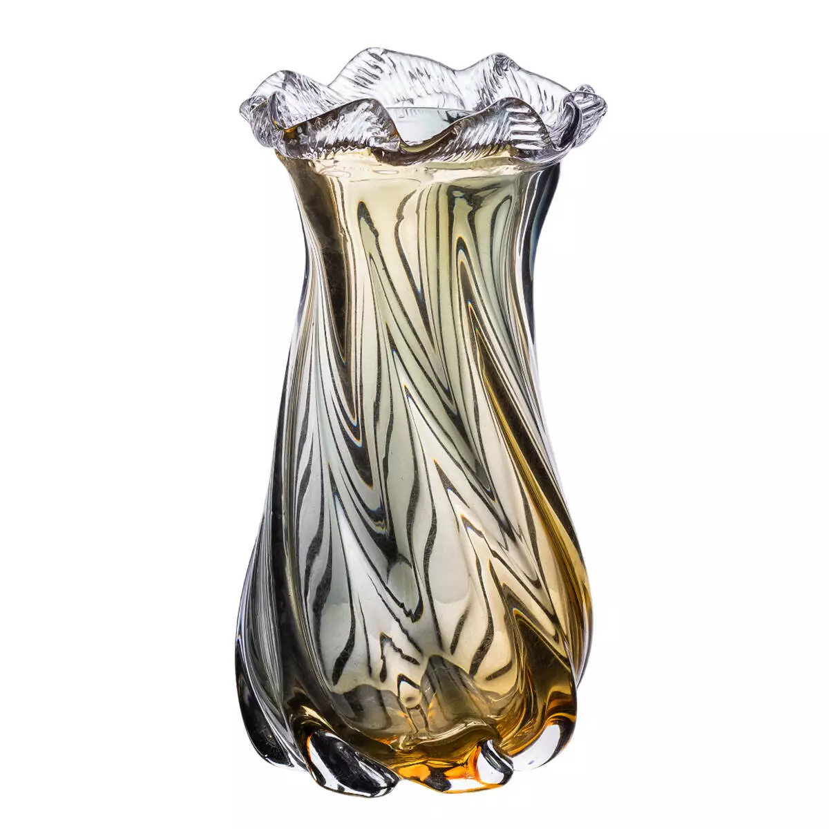 Ваза ручної роботи Lilly скляна 21 см, жовто-сірий