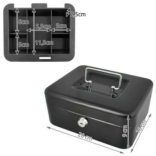 Велика металева касетна скринька для грошей Malatec 822 сейф каса - 20×16×9 см