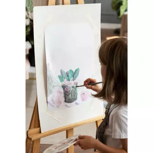 Мольберт для живопису — пристрій для підтримки полотна або іншої живописної поверхні у вертикальному положенні під час художньої роботи. Це надзвичайно корисний інструмент для художників, оскільки він дозволяє їм працювати на полотні комфортно та стабільно. Додатковий набір для малювання збагатить подарунок. Він містить надзвичайно важливі аксесуари для кожного художника, який хоче творити.