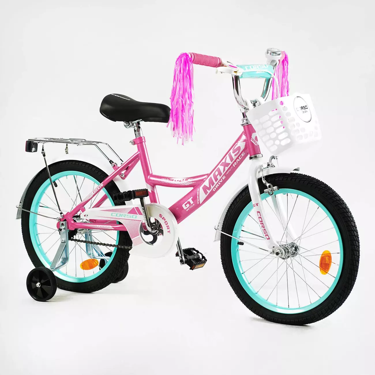 Дитячий двоколісний велосипед Corso 18" призначений для юних велосипедистів! Новий дизайн велосипеда, його комплектація і надійна конструкція зроблять прогулянки на свіжому повітрі активними і безпечними. Конструкцію велосипеда виготовлено з міцного сталевого сплаву, який не дасть його рамі деформуватися і забезпечить її стійкістю до пошкоджень. Рама представленої моделі із заниженою конструкцією, що робить її більш зручною для дитини. Малюк без проблем зможе сісти на велосипед і встати з нього. Колеса Corso 18" з надувною камерою на металевих дисках зі спицями. Над кожним колесом встановлені крила з металу. Вони допоможуть запобігти розбризкуванню бруду і води та захистять дитину і сам велосипед від забруднень. Кермо і сидіння велосипеда регулюється за висотою, що дасть можливість підібрати оптимальний розмір для кожної дитини індивідуально. Ручки керма з гумовими нековзними накладками. Безпеку під час катання забезпечать: металевий захисний щит на ланцюгу велосипеда, м'яка накладка на його кермі, а також кілька світловідбивних катафотів. Corso 18" обладнаний переднім ручним і заднім ножним гальмами. Спеціально для невпевнених велосипедистів ця модель комплектується двома знімними страхувальними колесами із пластику. Додатково велосипед обладнаний металевим багажником із затискачем, а також механічним дзвінком на кермі. Характеристики: - Вік: 6-8 років, зріст: 110-140 см; - Діаметр коліс: 18"; - Каретка: American (Американка); - Велосипед зібраний на 75%; Вага велосипеда з коробкою: 13 кг.
