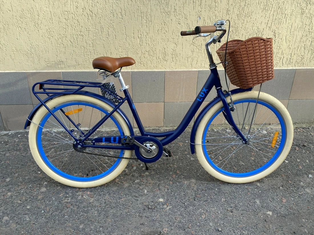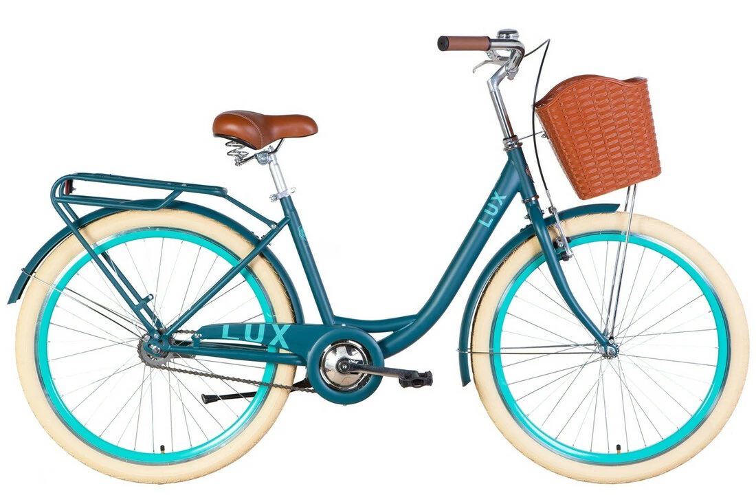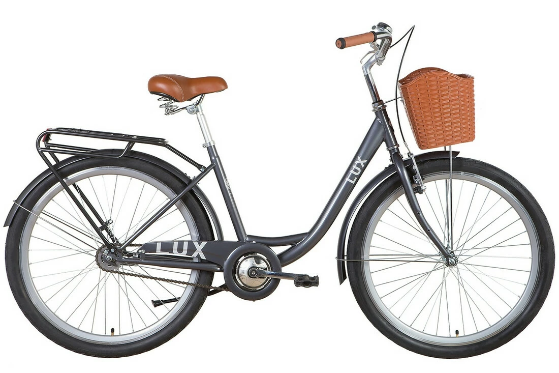 На велосипед встановлені багажник, кошик, крила від бруду та