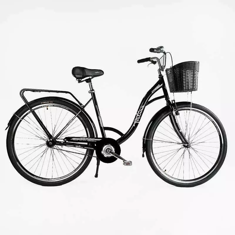 Велосипед міський Corso «FORTUNA» 28`` FR-28175 + КОШИК (1) ЧОРНИЙ, одношвидкісний, сталева рама 20``, корзина, багажник