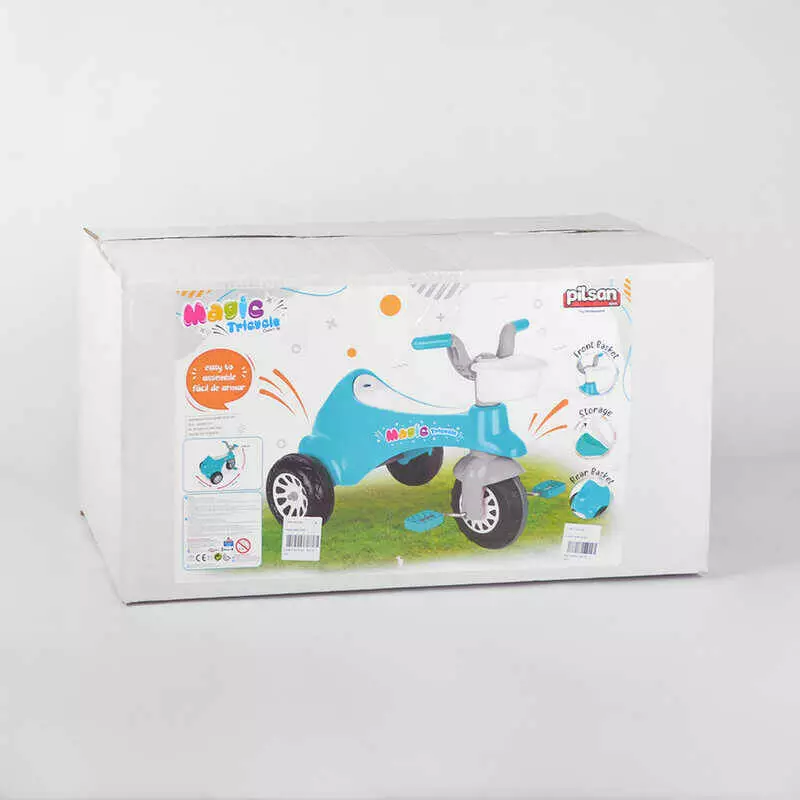 Велосипед трёхколёсный 07-180 (1) “Pilsan” цвет Бирюзово-белый, пластиковые колеса с накладкой, сиденье с отделением, 2 корзинки, в коробке