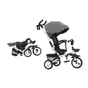 Швидко збирається без інструментів. Компактно складається в декілька рухів. Великий капюшон з трьома секціями та із світловідбивною стрічкою; Батьківська ручка з регуліровкою по висоті та підсклянником; М'яке сидіння з обертом на 360, регуліровкою відстані від керма. М'яка перегородка проти сповзання. М'яка спинка з регулюванням нахилу одним натиском; Триточкові ремені безпеки; Зносостійкі гумові колеса (8 дюймів задні, 10 дюймів переднє); Маленький кошик на рулі та велика кишеня за сидінням; 2 підніжки. Максимальне навантаження: 25 кг Розміри ящика - 61 * 43 * 35см