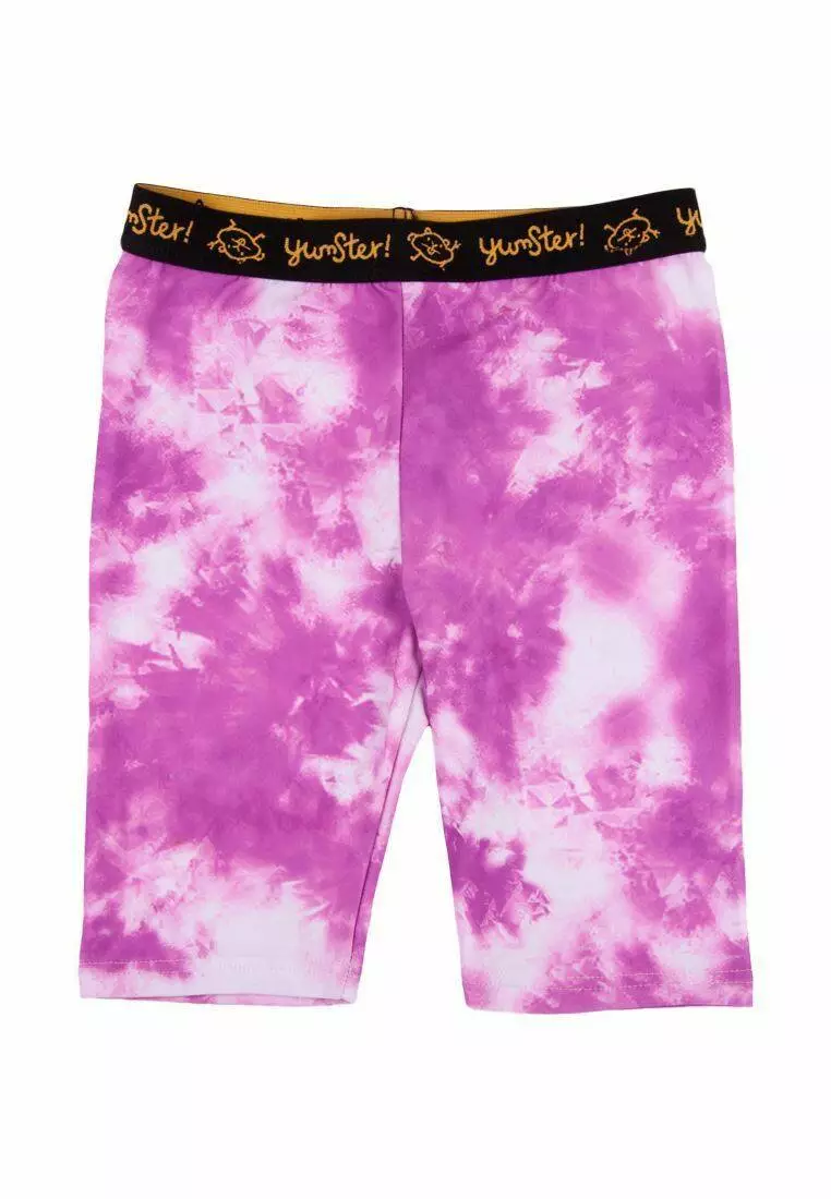 Деталі моделі: велосипедки з принтом тай-дай малинового кольору. Пояс на брендованій резинці. Довжина виробу - вище колін.