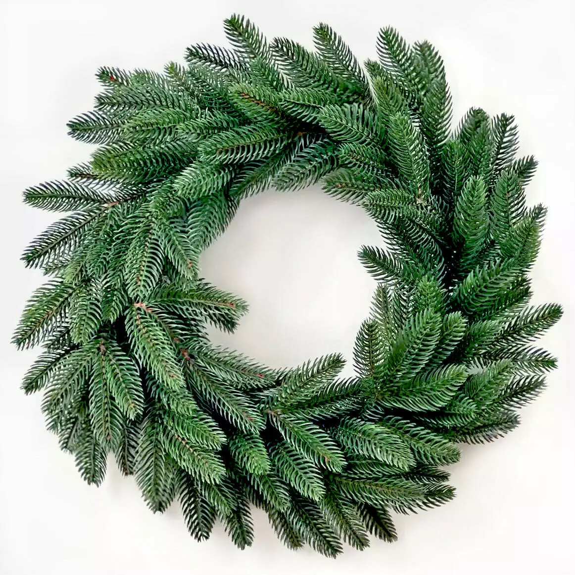 Венок рождественский Classic изготовлен из переплетённых искусственных еловых веток зелёного цвета серии Classic. Хвоя 100% литая поэтому выглядит как 3D-имитация ветки живой ёлки