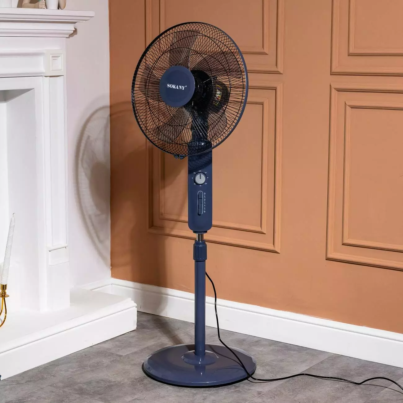 Підлоговий вентилятор SOKANY SK-19007 - відмінний варіант для забезпечення циркуляції повітря в приміщенні та його охолодження в літню спеку. Вентилятор має стійку основу, що дозволяє розміщувати його на нерівних поверхнях, регулювання висоти та кута обдування дає можливість вибирати оптимальний напрямок повітряного потоку. Діаметр лопат 40 см збільшує ефективність охолодження приміщення, а три швидкості дозволяють встановити бажаний режим роботи.