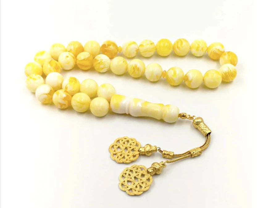 Вервиці з бурштину з металевої пензликом RESTEQ, намистини 16 мм, 33 намистини. Турецькі чотки