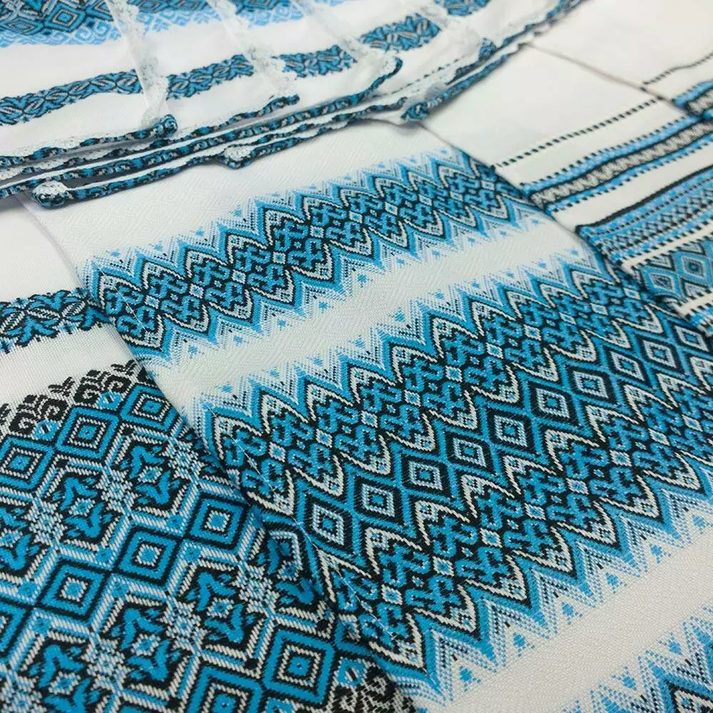 По краях синій тканий орнамент з акрилових ниток