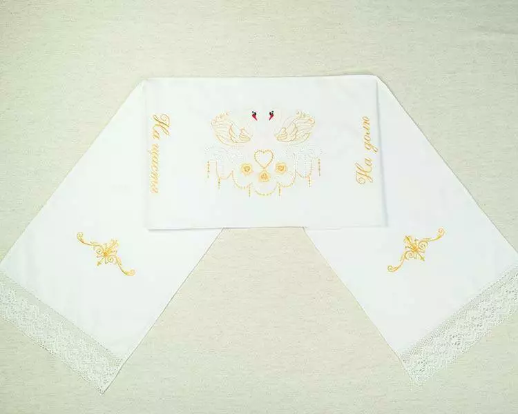 На весіллі рушником з вишивкою прикрашають ікони, якими благословляють молодят батька. Коровай завжди несуть на обрядового рушника. Молоді разом встають на весільний рушник, і звичайно ж скріплення долі (рук) не обходитися без рушника.