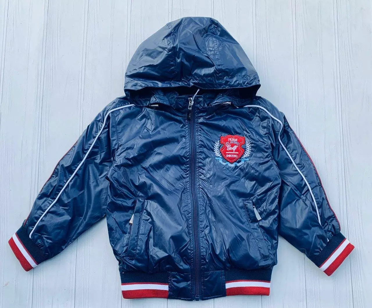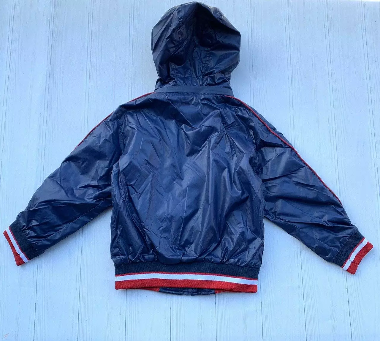 Описание: ветровка на молнии с прорезными карманами, капюшон съемный