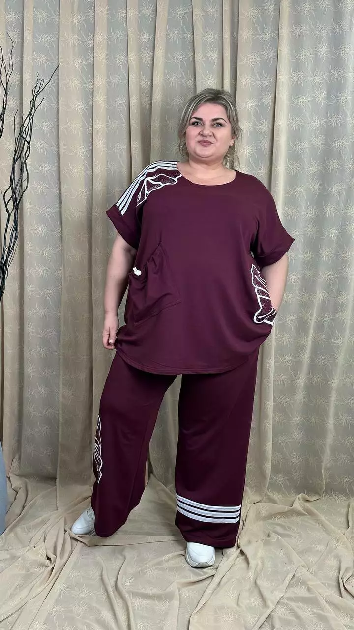 Вільний костюм із трикотажної тканини - двонитка, середньої щільності та гарної розтяжності.