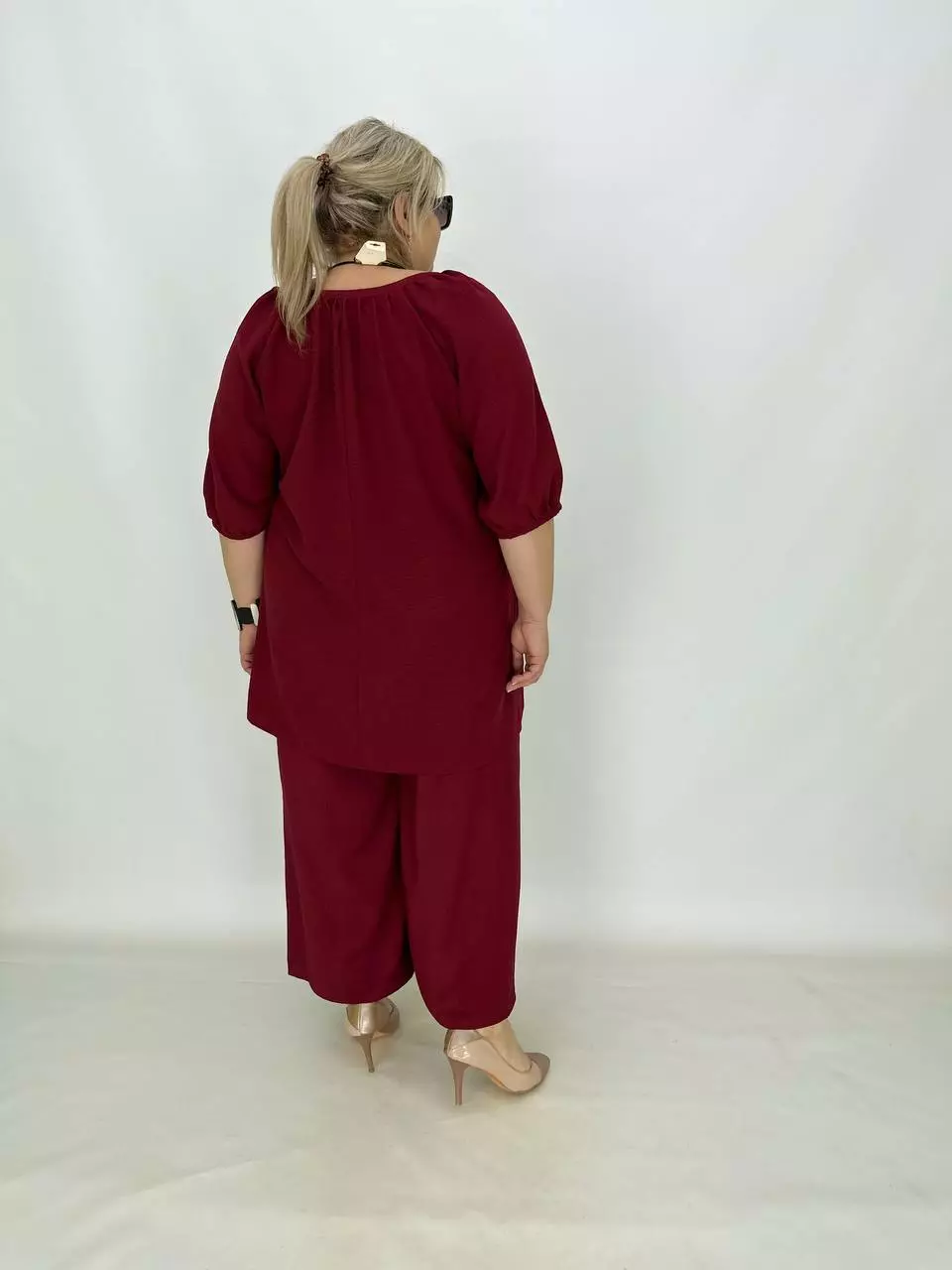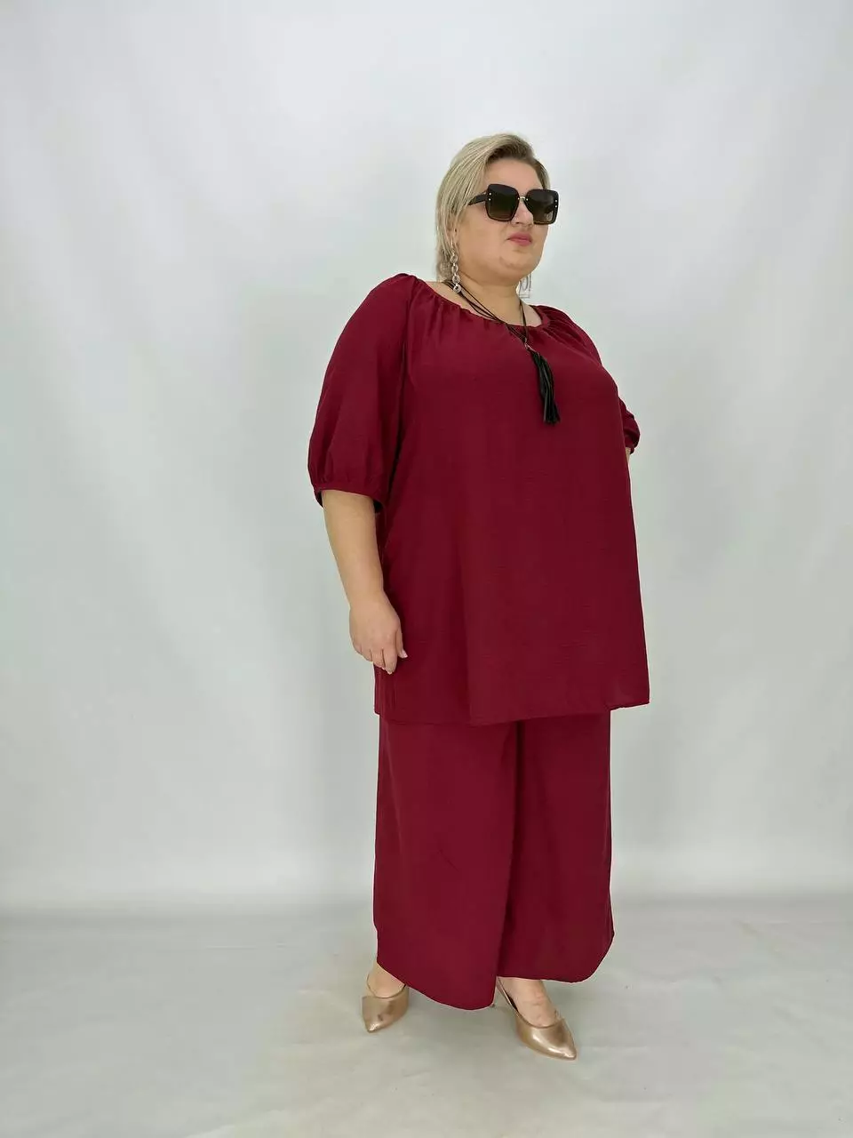 Тканина-американський креп, трохи тягнеться, невагома, не світиться, не потребує особливого догляду.
