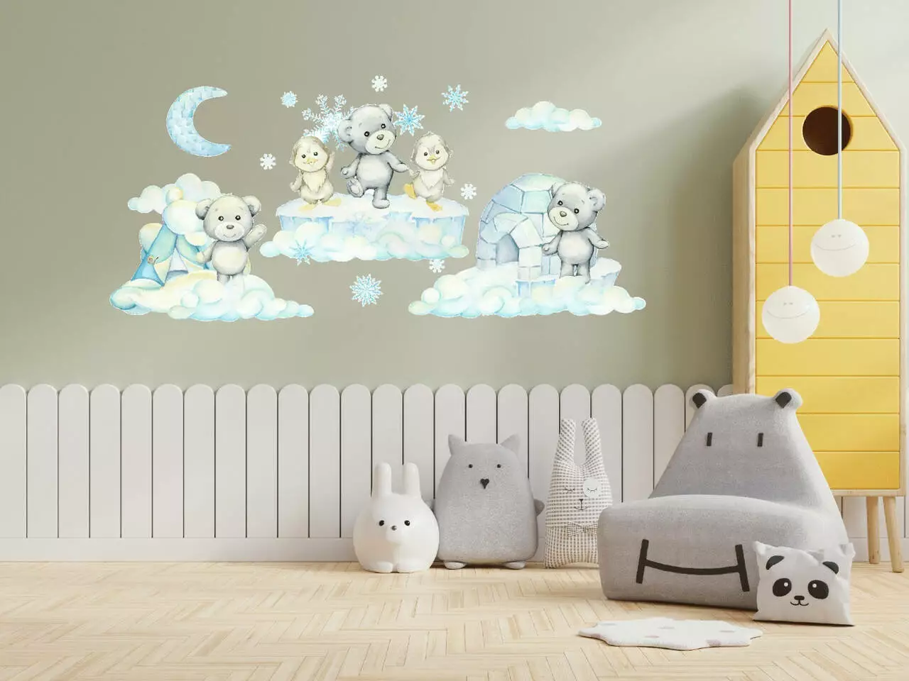 Оригинальный дизайн с медвежатами и пингвинами создаёт уютную и