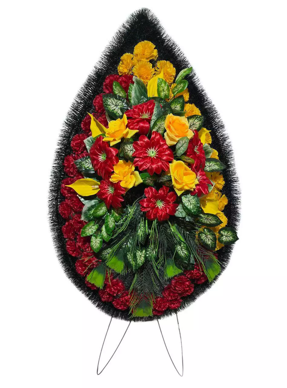 Ритуальний вінок зі штучної хвої розміром 137*70*14 см. Вінок