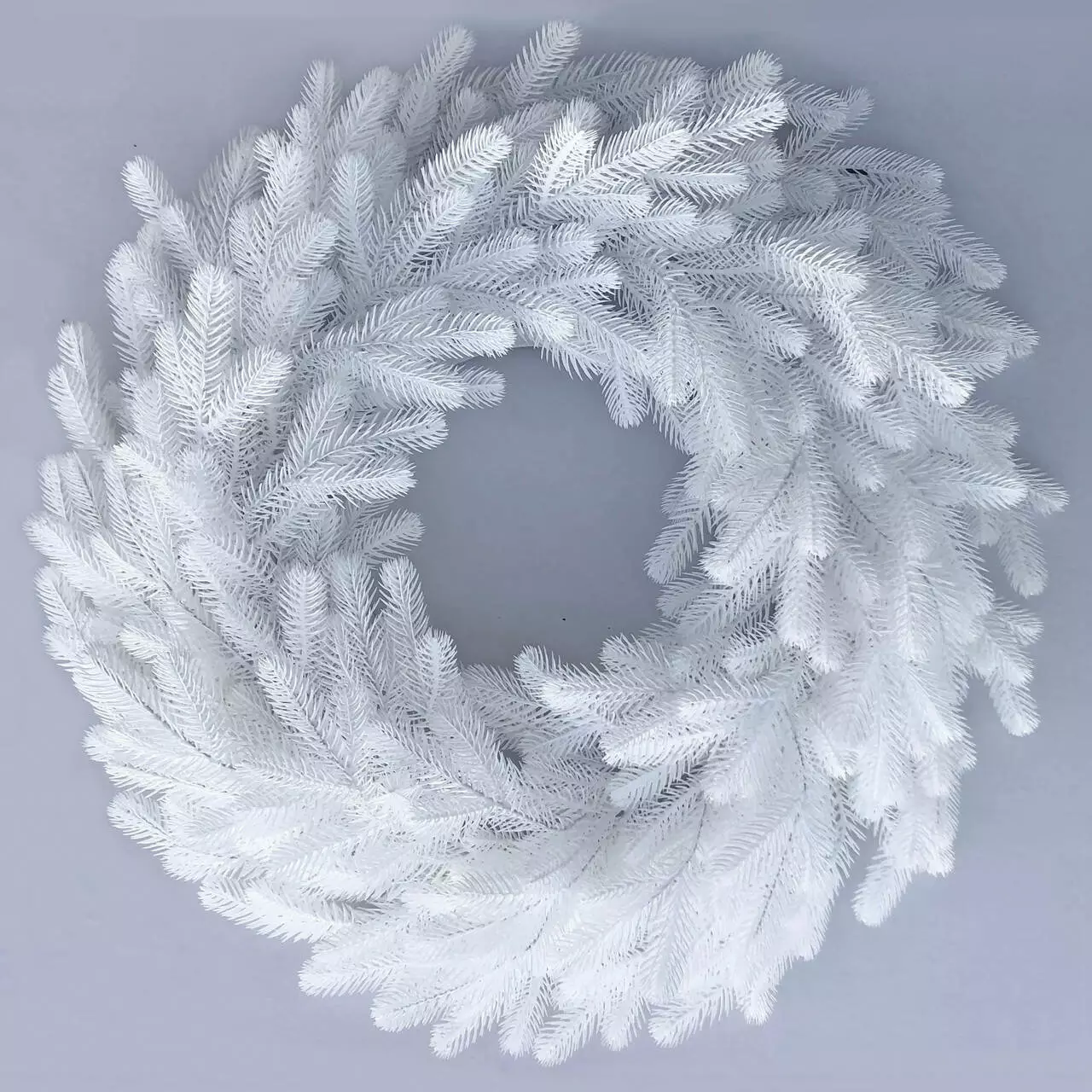 Новорічний декоративний вінок діаметром 60 см виготовлений з 100% литої хвої, яка надає йому природного вигляду. Гілки штучної ялинки переплітаються в красиву, пишну композицію, яка нагадує живу хвою, але є м'якою і безпечною на дотик. Вінок поставляється без декору, що дозволяє вам самостійно прикрасити його відповідно до власного стилю.