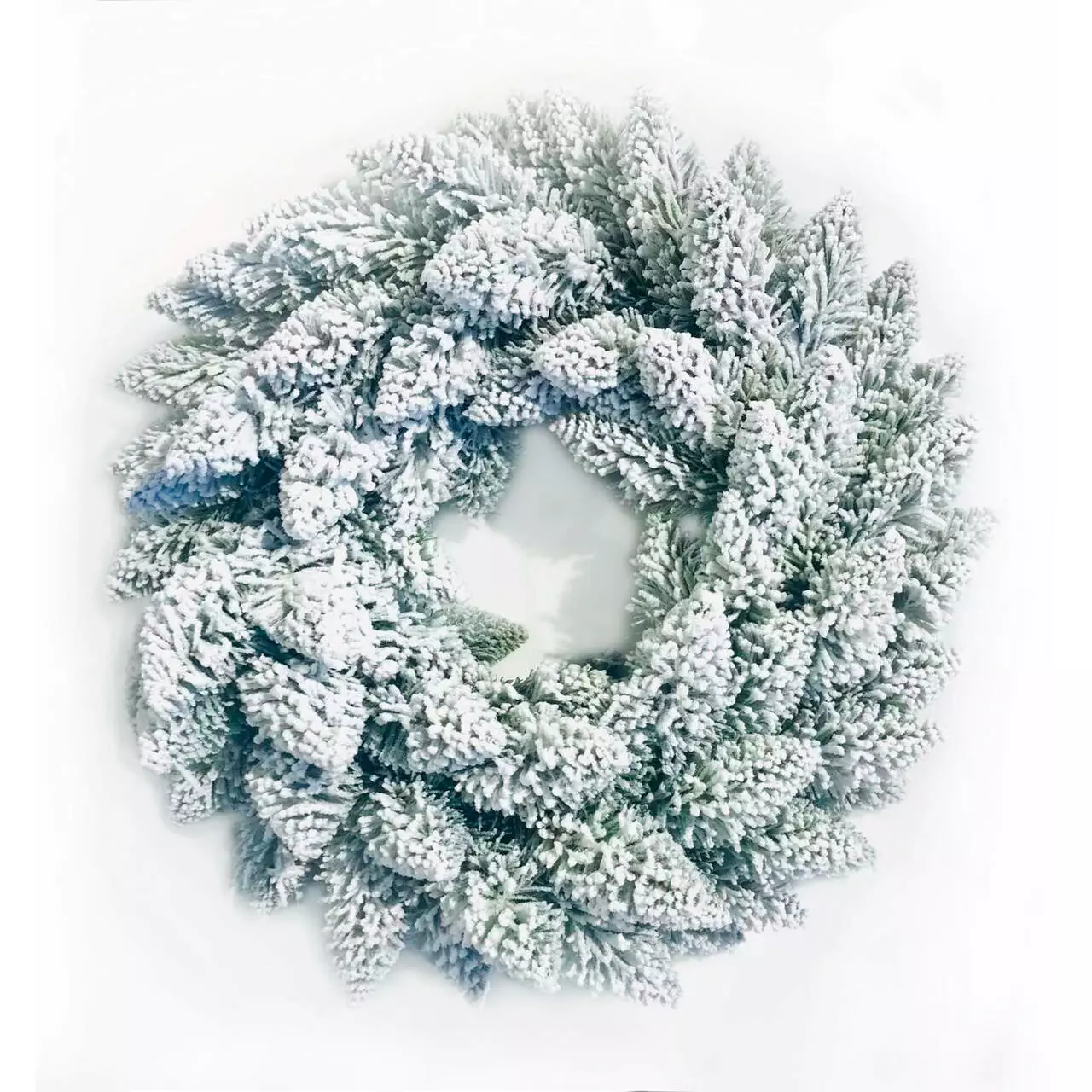 Засніжені гілочки різдвяного вінка серії Elegant мають кінчики загостреної форми. Вінок виготовлений з м'якого пластику ПВХ. Діаметр вінка по зовнішньому краю 50 см. Об'ємне густе напилення реалістично імітує сніг, тільки що впав на гілки пухнастими пластівцями. Матеріалом розпилення є натуральна бавовна, він екологічний і не має запаху, безпечний для дітей і дорослих.