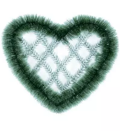 Вінок зі штучної хвої, у формі серця, заплетений по центру кольоровою сіткою, по краю йорш, розмір 50*54*10 см.