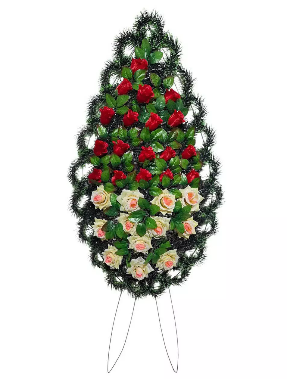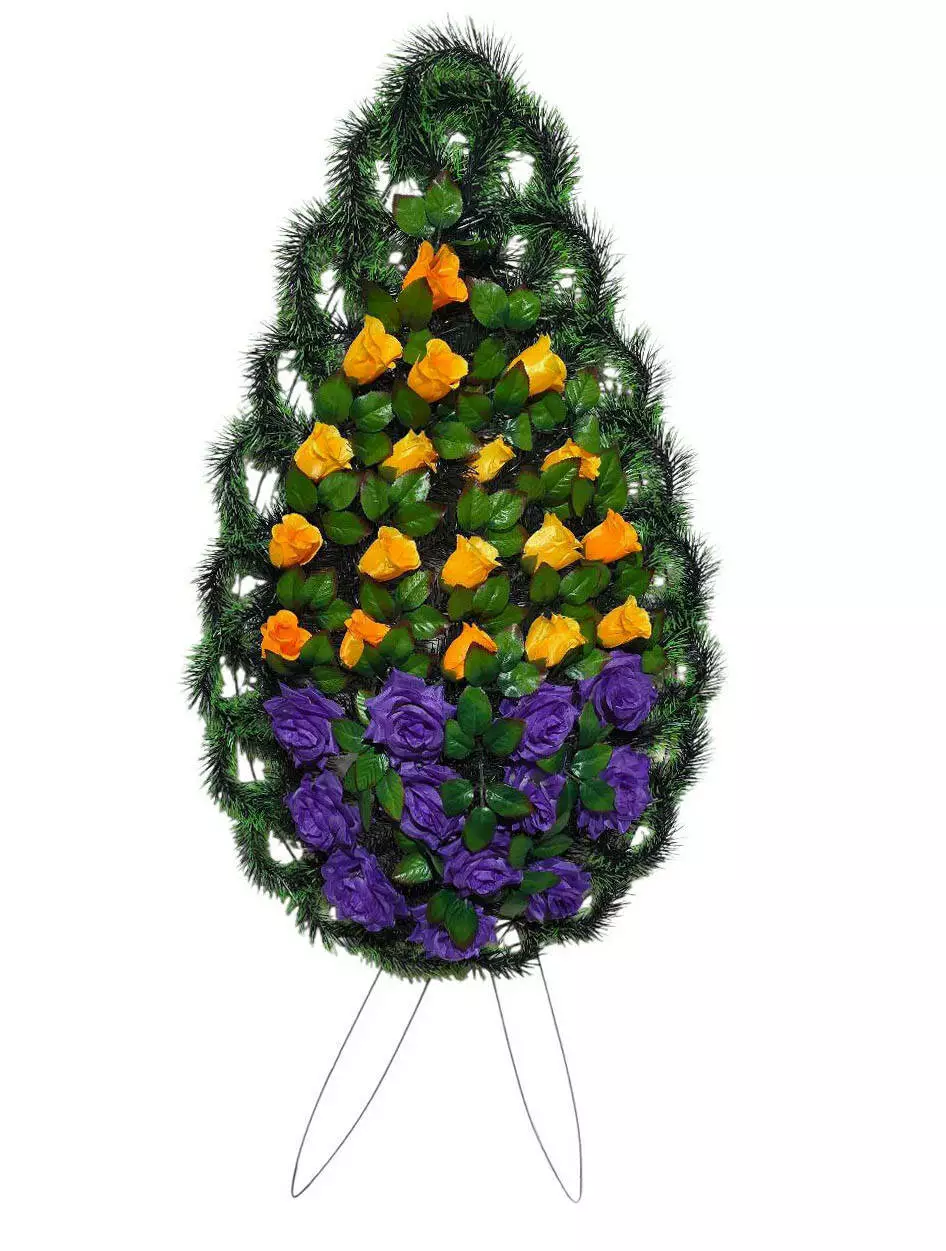 Ритуальний вінок зі штучної хвої розміром 140*58*13 см. Вінок