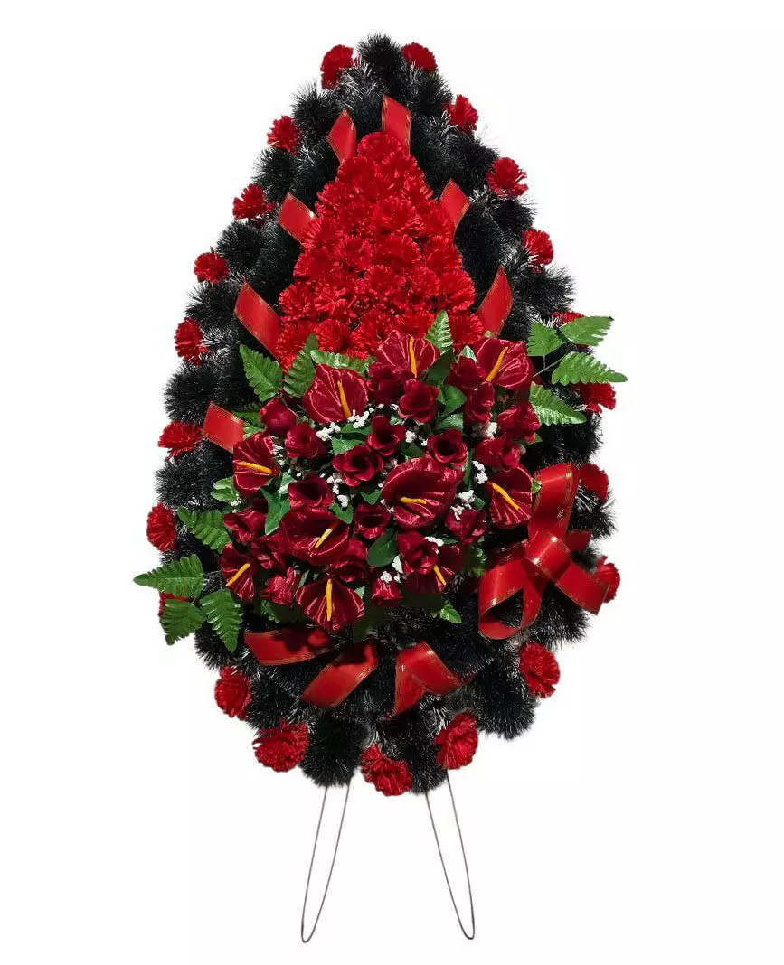 Ритуальний вінок зі штучної хвої розміром 170*72*18 см. Вінок