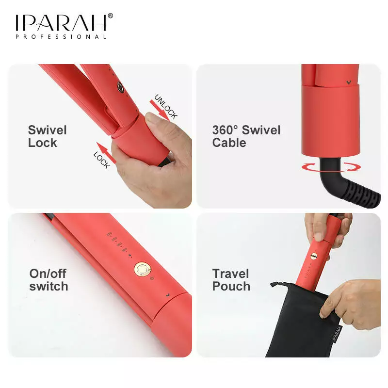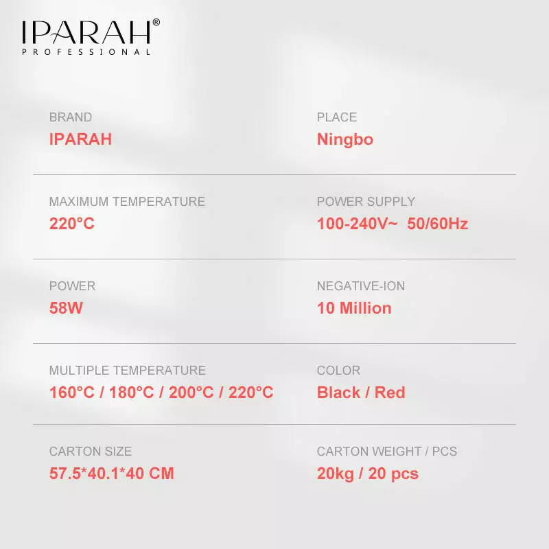 Випрямляч для волосся IPARAH P-103R RED, 4 режими, 160-220°C, керамічне покриття, 58 W