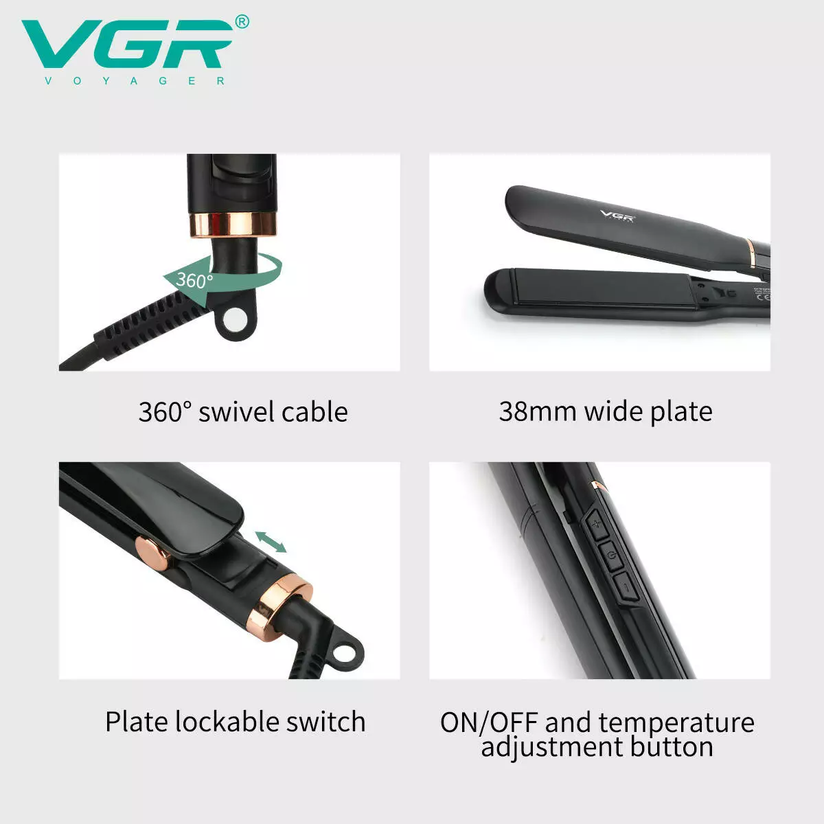 Професійний випрямляч для волосся VGR V‑519S — надійний та зручний інструмент для створення гладких, рівних зачісок у домашніх умовах та в салоні. Завдяки турмаліново-керамічним пластинам з шириною 38 мм прилад рівномірно розподіляє тепло по пасмах, знижує ризик пошкодження волосся і робить поверхню гладкою та блискучою після кожного укладання. Швидке нагрівання до робочої температури економить ваш час, а зручний провід з штекером, що обертається, забезпечує свободу руху під час використання.
