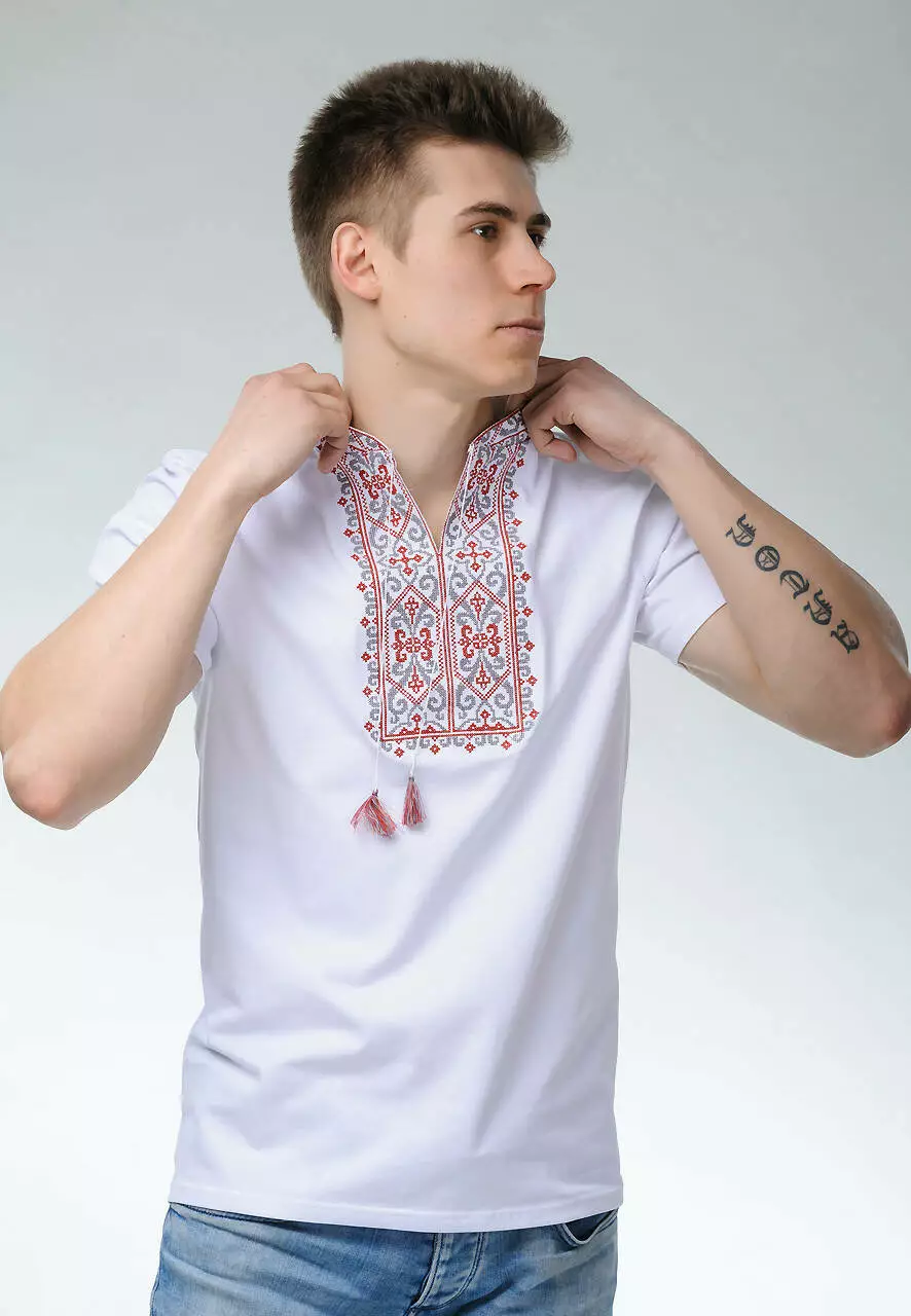 Білосніжна вишита футболка для чоловіків “Король Данило” стане улюбленою річчю в етномотиві для кожного справжнього українця. Така річ дарує Вам впевненість, сміливість та мужність. В основу цієї білосніжної моделі покладена високоякісна тканина з бавовни та еластану. Вона вигідно підкреслює контури Вашого тіла. Тканина не тьмяніє та не втрачає форми навіть після багаторазового прання.