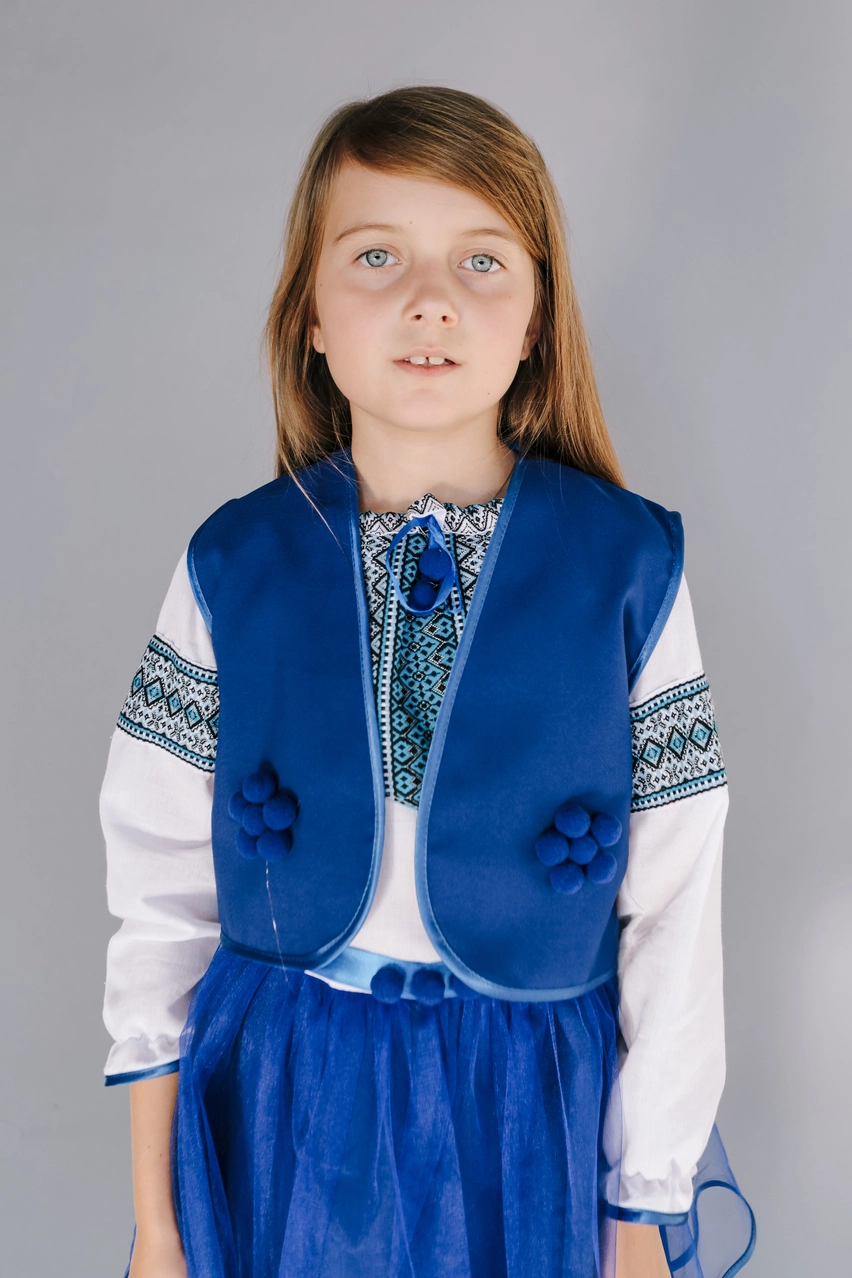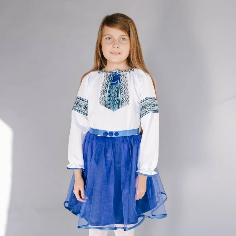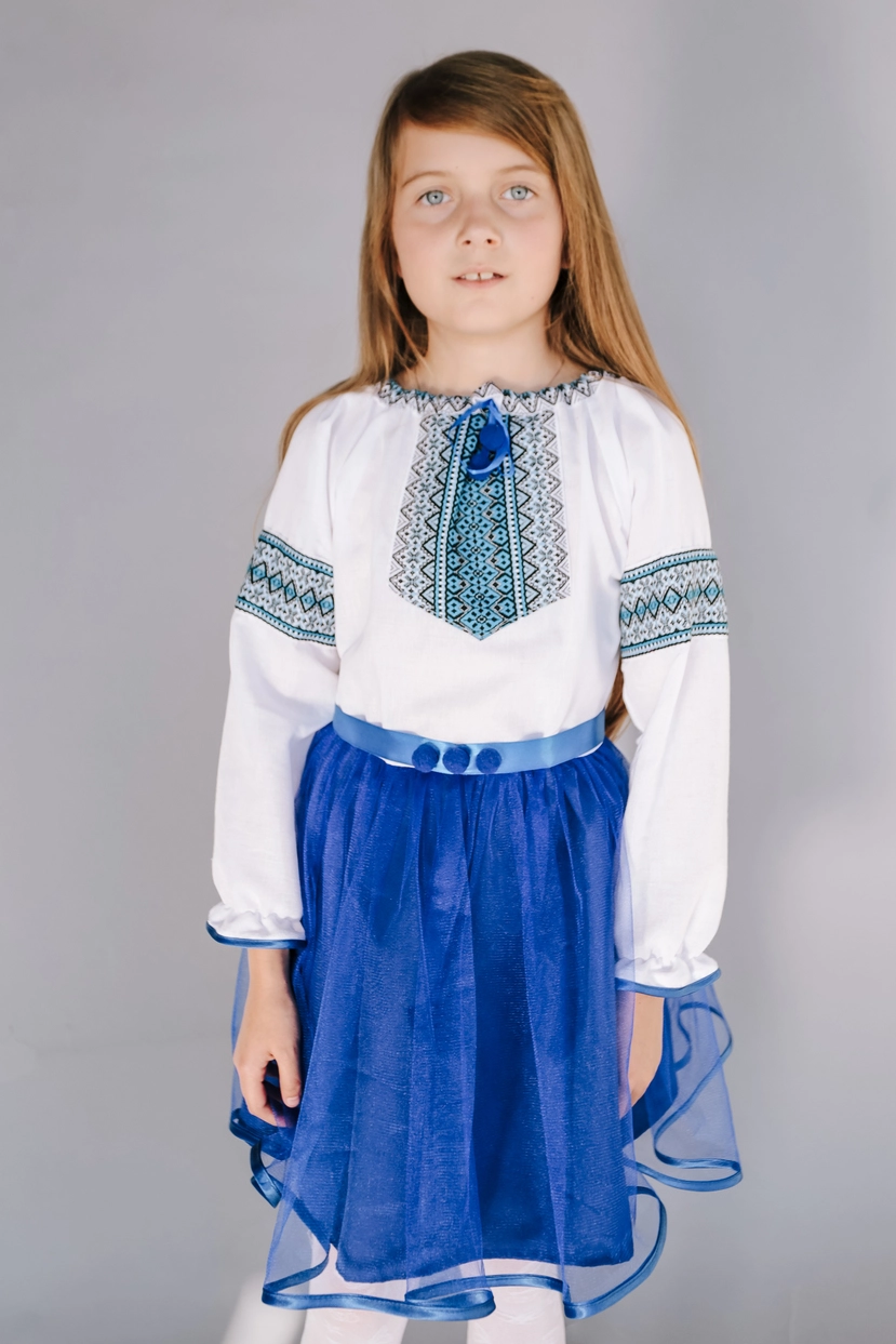Дитяча вишита сукня синього кольору з пояском від гуртівні Leosouvenir створить неперевершений вигляд Вашої дитини.