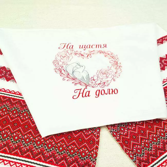 Весільний рушник "На щастя, на долю" часто використовується в українських обрядах.
