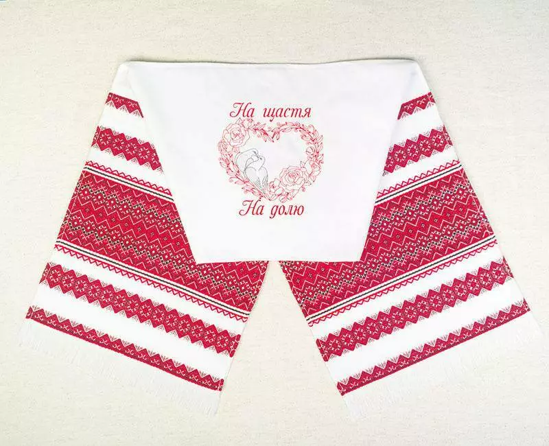 Весільний рушник "На щастя, на долю", який часто використовується в українських обрядах.