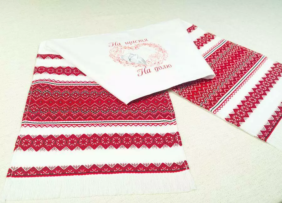 Весільним рушником прикрашають ікони, якими благословляють молодят батьки. Коровай завжди несуть на вишитому рушнику. Молодим кладуть весільний рушник "На щастя, на долю" під ноги, і звичайно ж використовують весільний рушник для зв'язування рук.