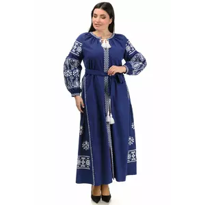 Сукня-вишиванка вільного фасону, має об'ємні рукави, а також поясок для підкреслення талії.