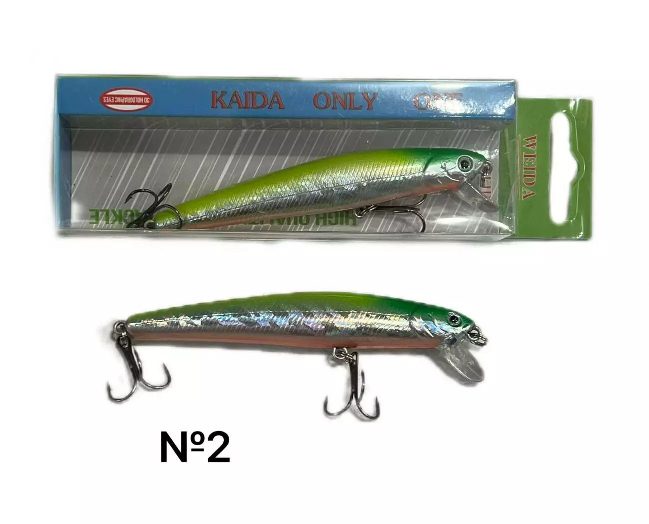 Воблер WEIDA Minnow — ефективна приманка для спінінгової ловлі хижої риби. Має реалістичну форму, 3D-очі та голографічне покриття, яке добре працює як у прозорій, так і в каламутній воді.