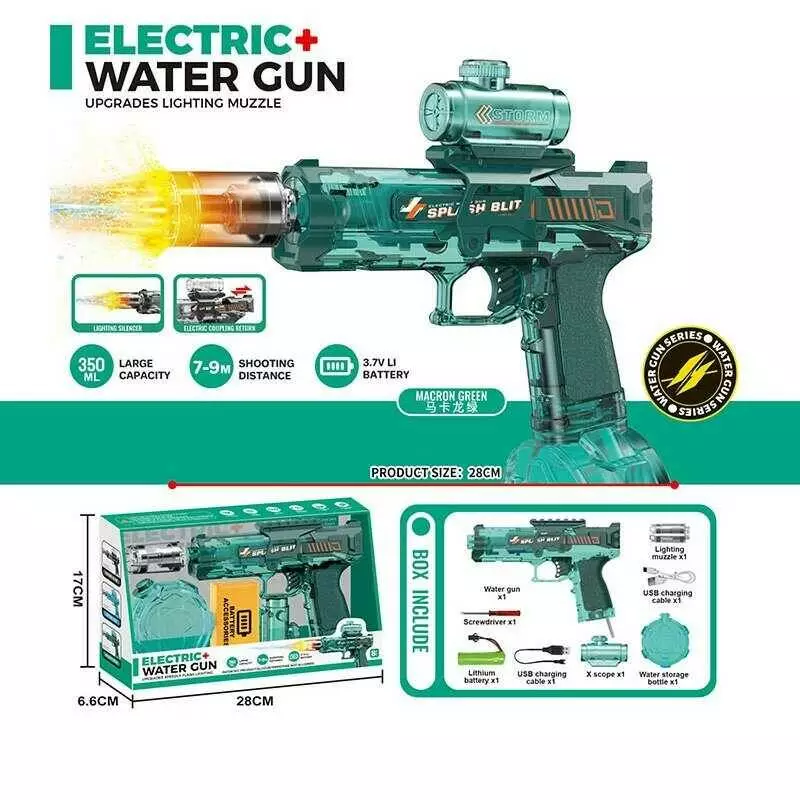 Водний пістолет KB 1508 Штрих=93867 (48) розмір: 28х5х24 см, акумулятор: 3.7 V, USB, підсвічування, резервуар: 350 мл, стрільба: 7–9 м, в коробці