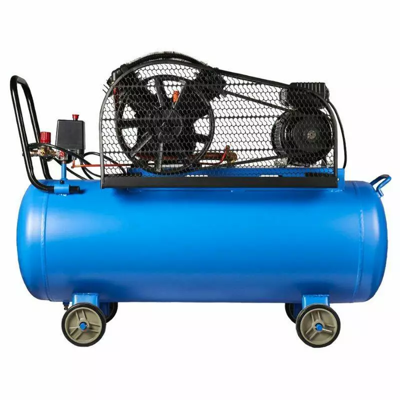 горизонтальным ресивером на 100 литров, двумя поршнями и системами