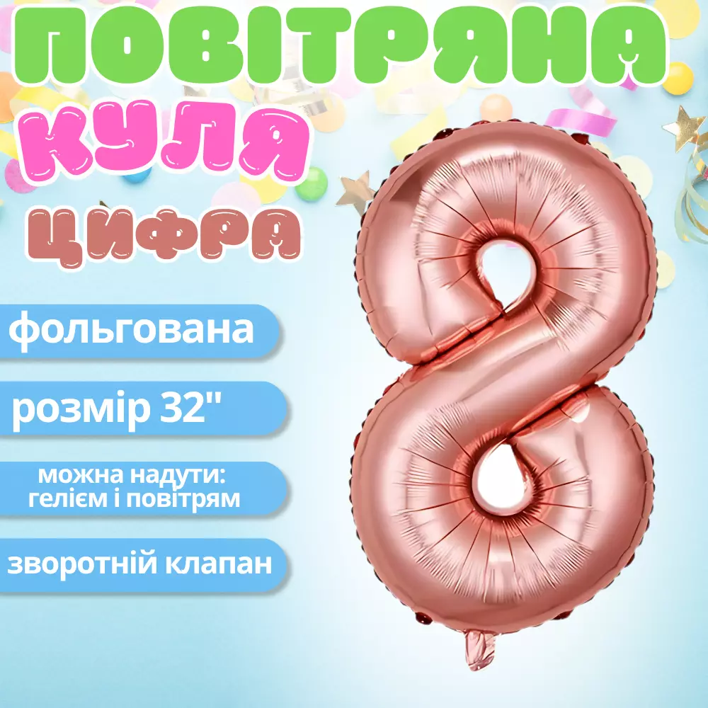 Фольгированный шар в форме цифры «8» цвета розовое золото —