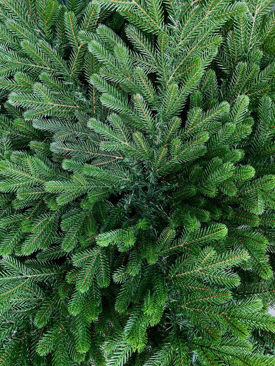• Пишна та густа крона: Завдяки збільшеній кількості литих гілок, ялинка виглядає надзвичайно об’ємною, а густота хвої приховує стовбур, надаючи дереву ефект повноти та багатошаровості.