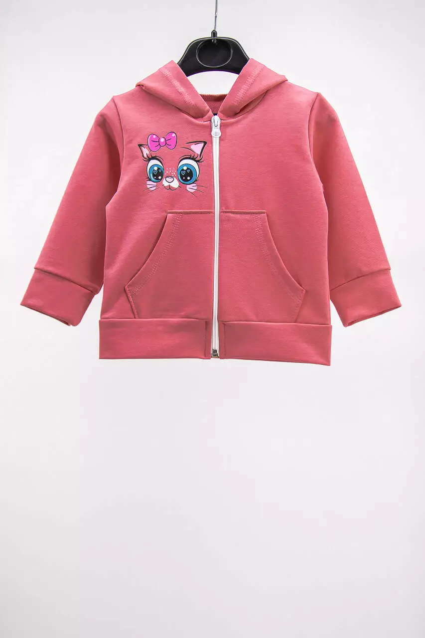 Кофта застегивается на молнию, есть капюшон, на рукавах трикотажный