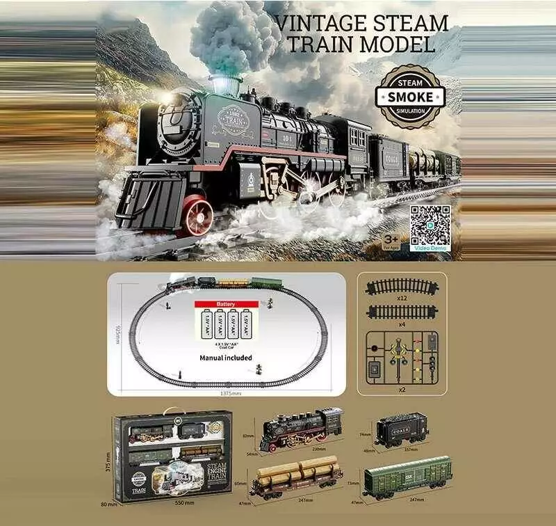 Залізниця HS 8022 A (12) локомотив, 3 вагони, звуки, підсвічування, парогенератор, в коробці